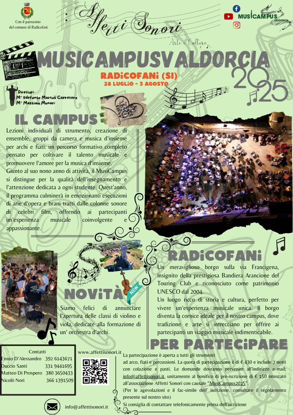 Il MUSICAMPUS SENIOR si svolgera' dal 21 al 25 luglio 2026.